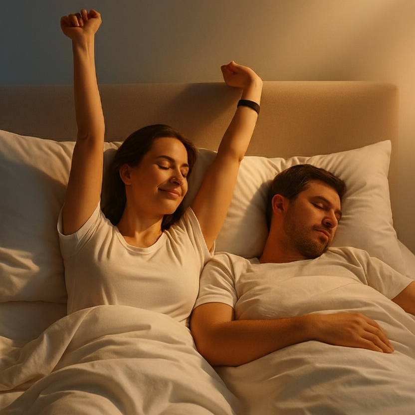 Unlike loud phone alarms or smartwatches that buzz and light up the room, Soovie™ uses gentle wrist vibrations designed to wake only you. It protects your partner’s sleep, and your relationship, by keeping mornings peaceful.