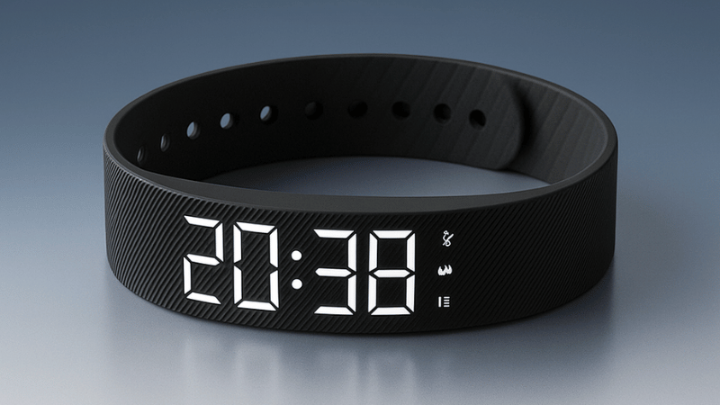 To charge your device, remove the main unit from the strap, insert it into any USB-A port (such as a wall adapter or laptop), and the screen will light up and vibrate to confirm it’s charging — if it doesn’t light up, flip it over and try the other orientation.
